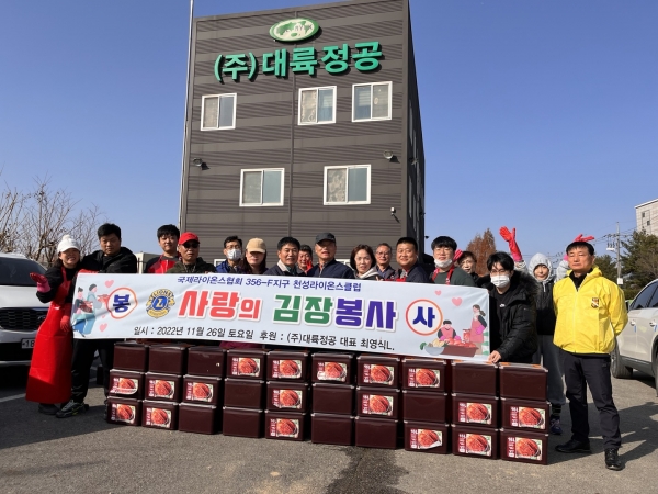 [세종타임즈] 국제라이온스협회 356-F지구 천성라이온스클럽이 지난 26일 취약계층에게 전달해 달라며 김장김치 30박스를 천안시 쌍용3동에 기탁했다.