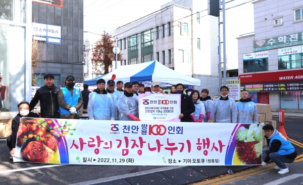 [세종타임즈] 천안쌍용100인회이 29일 취약계층에게 전달해달라며 김장김치 10kg 200박스를 천안시복지재단에 전달했다.