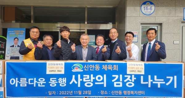 [세종타임즈] 천안시 신안동 체육회가 지난 28일 취약계층을 위한 김장김치 10kg, 38박스를 신안동에 기부했다.