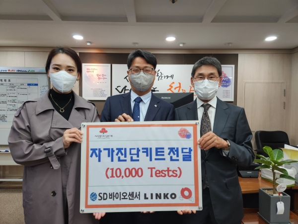 [세종타임즈] ㈜링크 · SD바이오센서는 지난 29일 자가진단키트 구입에 어려움이 있는 관내 복지시설 등에 전달해 달라며 코로나19 자가진단키트 1만 개를 천안시에 기부했다.