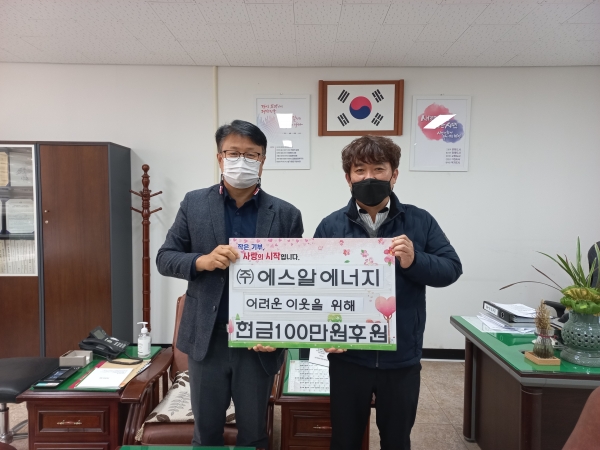[세종타임즈] ㈜에스알에너지가 지난 29일 어려운 이웃들을 위해 써달라며 후원금 100만원을 천안시 쌍용1동에 지정 기탁했다.