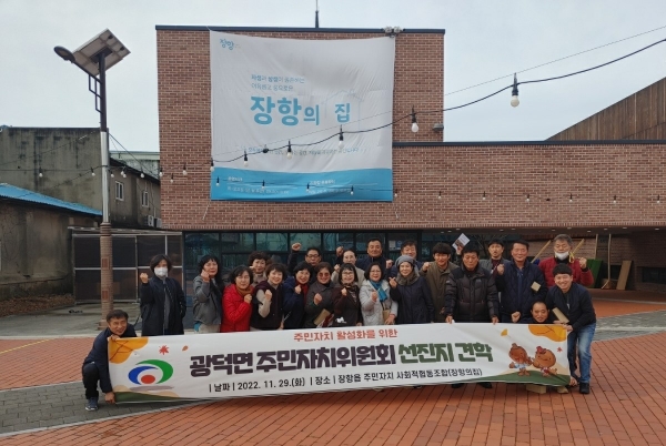 심상욱 광덕면장은 “이번 선진지 견학이 주민자치위원들의 견문과 안목을 넓히는 계기가 됐다”며 “앞으로 주민총회를 통해 광덕면 실정에 맞는 다양한 사업이 발굴될 수 있도록 아낌없이 지원을 하겠다”고 전했다.