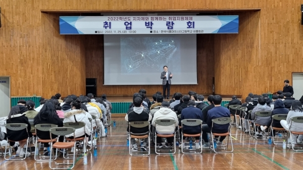 학교에서는 학생들에게 관내 기업과 취업지원 정책 등을 알려 지역에 정착할 수 있는 환경조성에 힘쓰고 인력 확보가 어려운 기업은 젊은 지역 인재 확보를 위해 현장에서 취업 면접으로 채용, 직무 관련 상담을 진행했다.