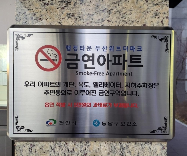 동남구보건소는 2017년 동남구 제1호 금연아파트를 시작으로 현재 10개의 금연아파트를 지정해 지역사회 간접흡연 방지 및 쾌적한 금연환경 조성에 앞장서고 있다.