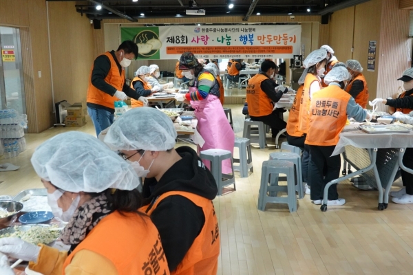 [세종타임즈] 한줄두줄나눔봉사단이 지난 7일 ‘제8회 사랑·나눔·행복 만두 만들기’ 봉사활동을 실시했다.