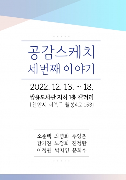 [세종타임즈] 천안시 쌍용도서관 갤러리는 오는 13일부터 18일까지 공감스케치 ‘세번째 이야기’ 전시회를 개최한다.