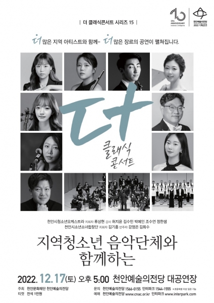 [세종타임즈] 천안문화재단은 오는 17일 천안예술의전당 대공연장에서 ‘더 클래식 콘서트 시리즈 15-지역 청소년 음악단체와 함께하는’공연을 개최한다.
