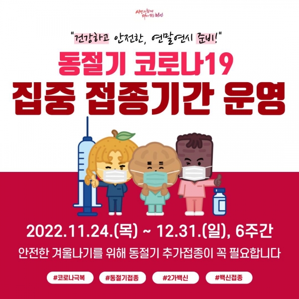 [세종타임즈] 천안시는 동절기 코로나19 추가접종 집중 접종기간을 오는 31일 연말까지 연장한다고 밝혔다.