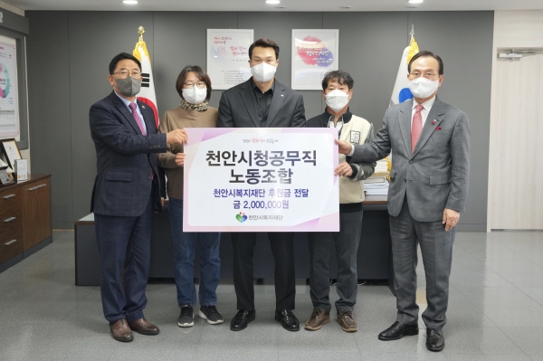 [세종타임즈] 천안시청공무직노동조합은 14일 천안시청에서 취약계층을 위해 200만원의 후원금을 천안시복지재단에 전달했다.