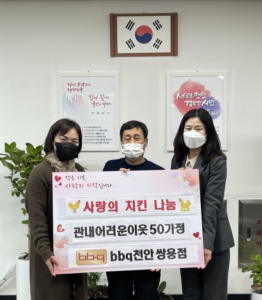 BBQ천안쌍용점은 매년 연말 어려운 이웃을 위한 후원을 지속적으로 하고 있다.