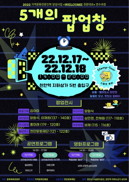 [세종타임즈] 천안역지하도상가에서 오는 17일부터 18일까지 문화 팝업스토어 ‘5개의 팝업창’이 열린다.