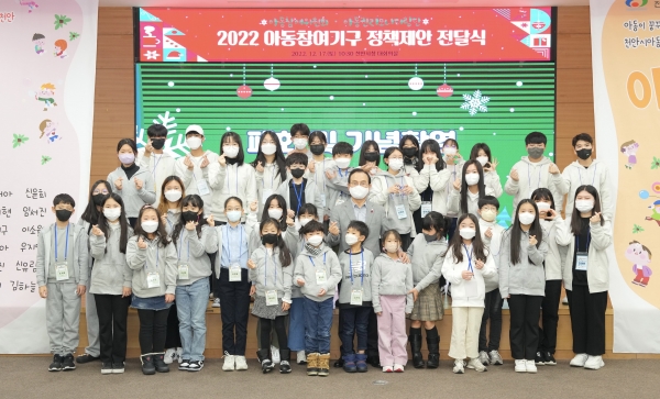 전달식은 2022년 활동 동영상 시청 후 각 분과의 대표 아동 12명이 제안 정책에 대해서 발표했다.