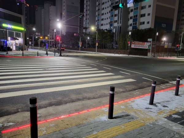 특히 스마트폰을 사용하는 보행자들도 신호정보를 파악할 수 있고 차도와 보도의 경계선을 명확하게 표시해 보행자의 오출발, 지연출발 등 방지 및 운전자들의 주위도 환기해 교통사고를 예방할 수 있다.