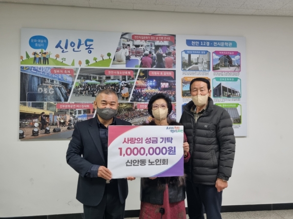 [세종타임즈] 천안시 신안동 노인회는 지난 20일 어려운 이웃을 위해 사용해달라며 성금 100만원을 신안동에 기탁했다.