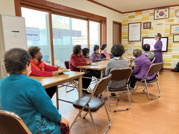 ‘사뿐가뿐 활력UP 건강교실’프로그램은 겨울철 농한기를 맞아 어르신을 대상으로 성인병, 만성질환 예방을 위한 노인체조, 레크레이션 등으로 구성됐다.