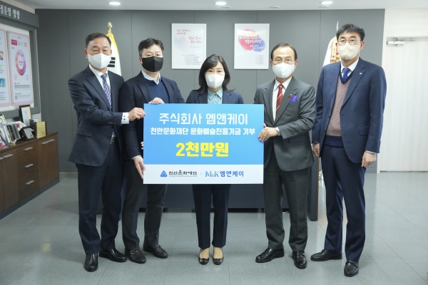 문순애 엠앤케이 대표는 “기부금이 천안시의 문화예술 발전과 문화재단의 고유목적사업을 위해 사용되길 바란다”고 말했다.