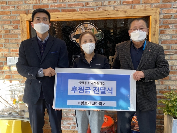 이번 성금은 황보가 코다리의 주류 판매 금액 중 일정액을 어려운 이웃을 위해 적립해 마련됐다.