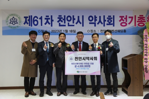 [세종타임즈] 천안시약사회가 18일 설 명절을 맞이해 취약계층 지원을 위한 후원금 400만원을 천안시복지재단에 전달했다.