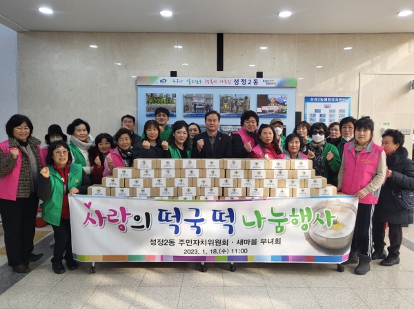[세종타임즈] 천안시 성정2동 주민자치회과 새마을부녀회가 지난 18일 사랑의 떡국 떡 나눔 행사를 함께 가졌다.