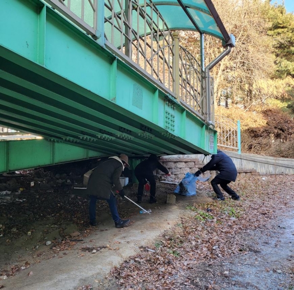 이날 통장협의회 회원들은 띠녹지 공간을 돌며 각종 무단 투기된 쓰레기와 폐기물, 나뭇가지, 낙엽 등을 집중 수거했다.