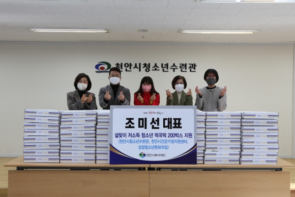 조미선 대표는 “우리 주변 어려운 환경의 청소년들이 따뜻한 설을 보내길 희망한다”며 “앞으로도 청소년들의 건강과 행복을 위해 다양한 지원을 할 수 있도록 노력하겠다”고 전했다.