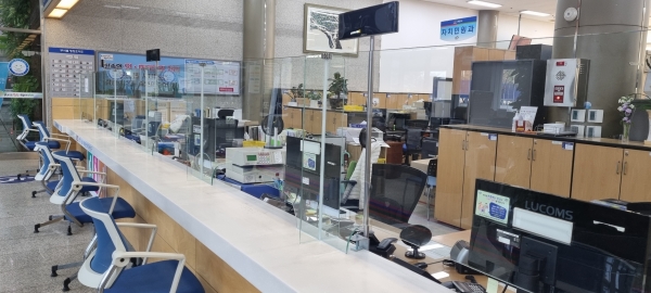 기존 아크릴 재질의 민원창구 투명가림막이 물리적 충격에 약하고 고정되지 않아 특이 민원인으로부터 민원담당 공무원을 보호하기에는 부족해 외부 충격에 강한 강화유리 재질의 고정식 가림막을 설치했다고 시는 설명했다.