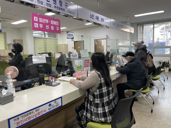 코로나 방역을 위해 임시적으로 설치했던 아크릴판을 강화유리로 교체해 밝은 분위기를 조성하고 행정복지센터를 찾은 임산부나 장애인이 대기없이 민원상담을 받아볼 수 있도록 민원인의 편의를 도모했다.
