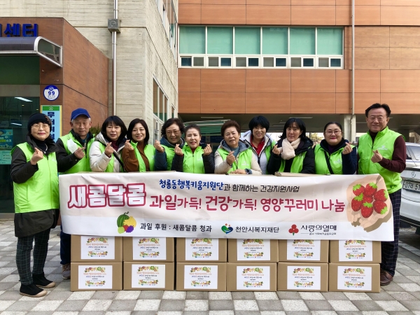 [세종타임즈] 천안시 청룡동 행복키움지원단이 지난 8일 지역 주민의 영양 증진을 위한 ‘새콤달콤 과일가득 건강가득 영양꾸러미 나눔’ 사업을 시작했다.