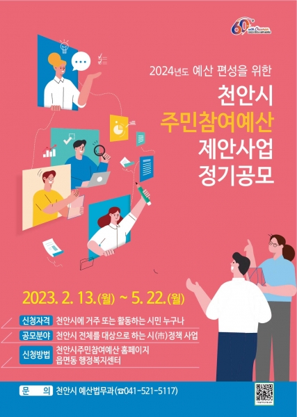 [세종타임즈] 천안시가 예산 편성 과정에 주민 참여 기회를 보장하고 재정민주주의를 구현하기 위해 2024년도 예산에 반영할 주민참여예산 사업을 2월 13일부터 5월 22일까지 공모한다.