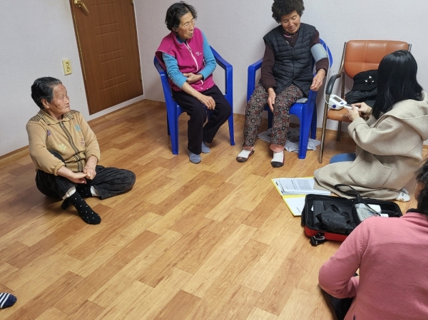 [세종타임즈] 천안시 북면이 지역 경로당을 찾아 경로당 이용 노인을 대상으로 건강관리 서비스를 제공하고 복지상담을 진행했다.