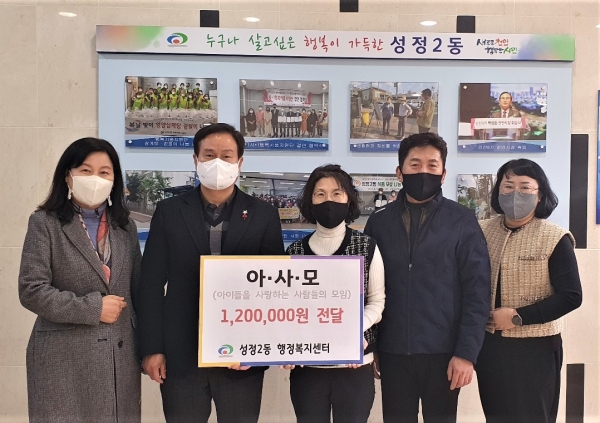 [세종타임즈] 천안시 성정2동은 지난 20일 ‘아이들을 사랑하는 사람들의 모임’이 저소득 조손가정 아동을 위한 장학금 후원을 약속했다.