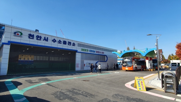 천안시 수소충전소는 종합운동장 부지에 위치해 연중무휴 운영 중으로 하루 100대의 충전이 가능한 시설이다.