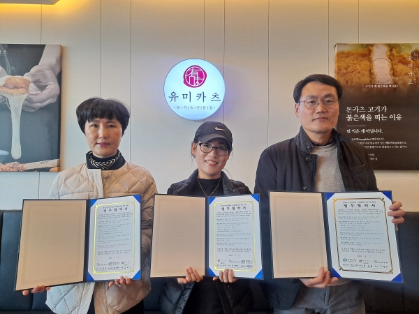 ‘유미카츠 신불당점’은 이번 협약을 통해 매월 취약계층 5가구에 돼지고기너비튀김을 지원하기로 했다.
