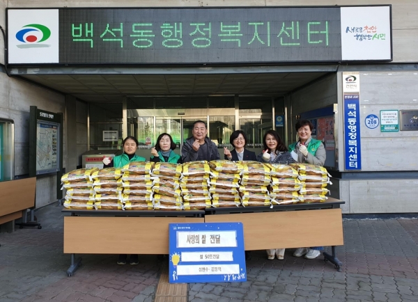 김수진 백석동장은 “지역사회 나눔을 실천해 주시는 두 분의 따뜻한 마음에 감사하다”며 “기부해 주신 백미는 백석동 이웃에게 잘 전달하겠다”고 전했다.