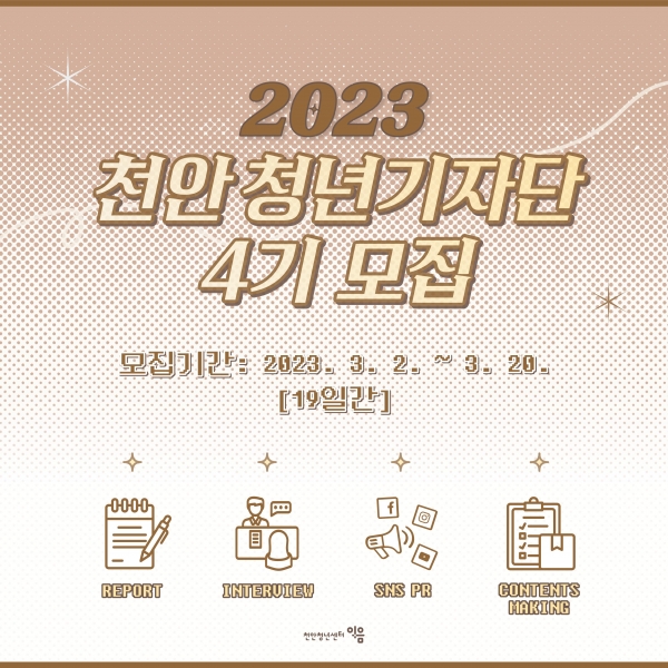 [세종타임즈] 천안시는 청년 소통공간 천안청년센터 이음이 ‘천안 청년기자단 4기’를 모집하고 있다고 밝혔다.