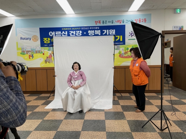[세종타임즈] 천안시 쌍용2동은 지난 19일 천안남산로타리클럽이 홀몸 어르신 24명을 대상으로 장수 사진을 촬영했다고 밝혔다.