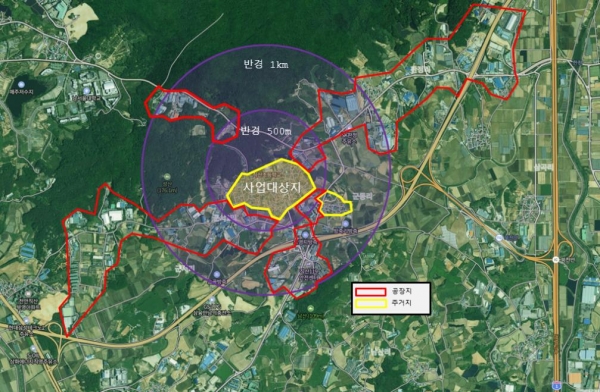직산읍 군동·군서마을 일원은 구도심으로 고령자 비율이 높고 단독주택이 밀집해 있으며 주변은 개별공장들이 이격거리 없이 접해 있어 주거환경 악화, 폭염, 열대야 일수 증가 등 마을주민을 위한 기후위험과 환경문제 개선이 필요한 지역으로 판단됐다.