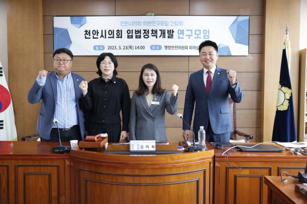 [세종타임즈] 천안시의회 입법정책 개발을 위한 연구모임은 23일 행정안전위원회 회의실에서 1차 간담회를 개최했다.
