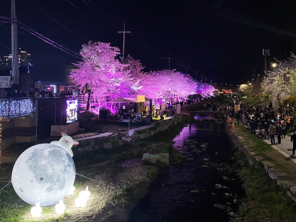 특설무대 인근 벚꽃나무와 육교에는 경관조명과 포토존을 설치해 벚꽃길 야간 산책을 즐기려는 시민들의 만족도를 높였다.