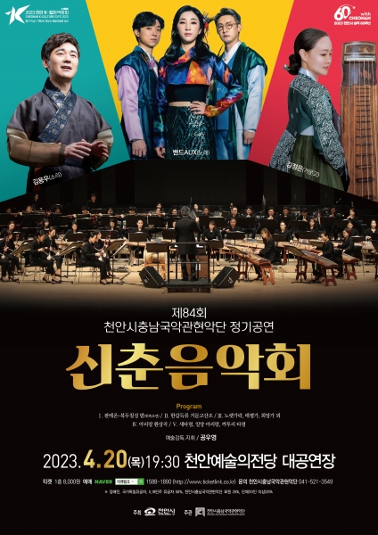 천안시충남국악관현악단 제84회 정기공연 신춘음악회는 티켓링크와 네이버 예약을 통해 예매할 수 있다.