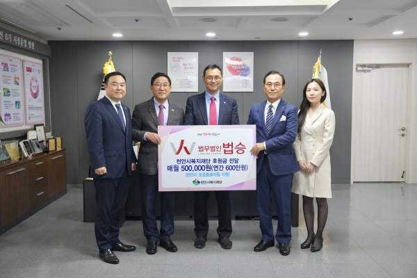 [세종타임즈] 천안시복지재단는 법무법인 법승 천안사무소가 천안시 보호종료 아동을 위해 사용해달라며 매월 후원금 50만원을 지원하기로 약정했다고 11일 밝혔다.