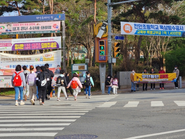 [세종타임즈] 천안시 문성동이 지난 10일 통장협의회와 함께 등교 시간대에 천안초등학교 교문 앞에서 ‘어린이 보호 구역 내 교통사고 줄이기 캠페인’을 실시했다.