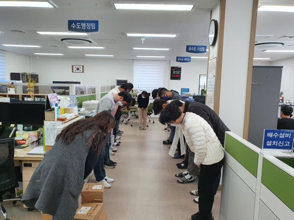 이번 교육은 김주환 수도사업소장의 주재로 행정서비스에 대한 기본자세를 통한 민원응대 친절 생활화와 투명한 공직문화 조성을 위한 청렴실천 기강 확립이라는 내용으로 교육 실시했다.