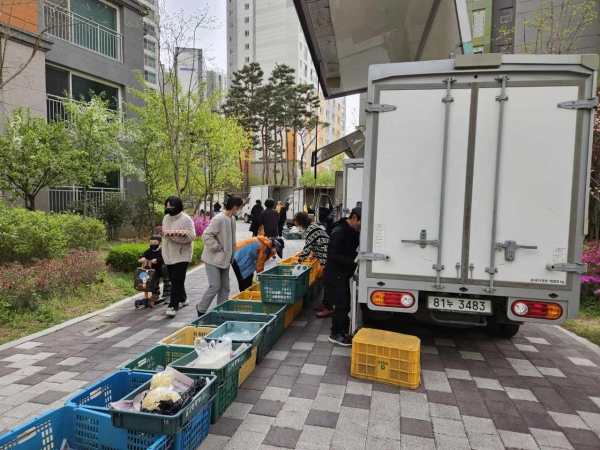 농뜨레 목요장터는 2개 조로 편성된 판매조가 16개 아파트를 한 아파트 당 20~30분 내외로 순회하며 판매한다.