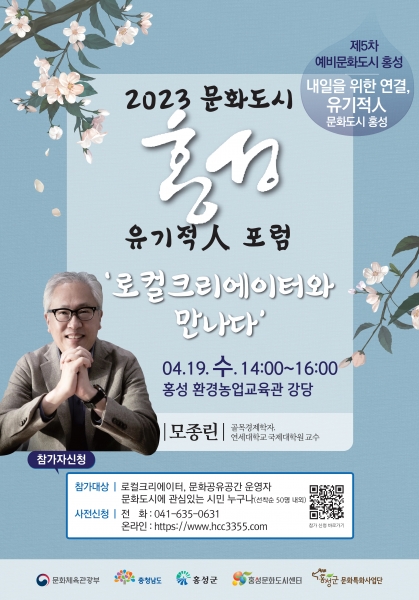 [세종타임즈] 홍성문화도시센터는‘로컬크리에이터와 만나다’라는 주제로 ‘문화도시 홍성 유기적人 1차 포럼’을 4월 19일 오후 2시 홍성 환경농업교육관에서 개최한다.