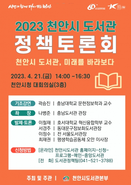 [세종타임즈] 천안시도서관본부가 오는 21일 천안시청 대회의실에서 ‘2023 천안시도서관 정책토론회’를 개최한다.