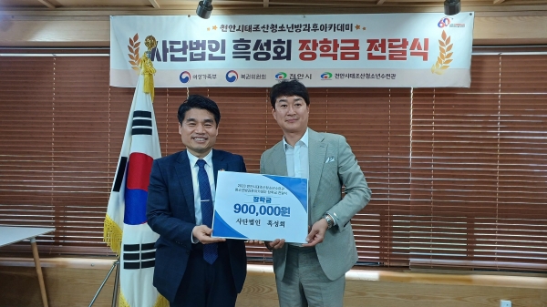 [세종타임즈] 천안시태조산청소년수련관은 지역사회 연계로 봉사단체 사단법인 흑성회로부터 장학금 90만원을 전달받았다고 18일 밝혔다.