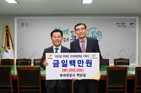 박정현 부여군수는 “올해도 잊지 않고 장학금을 기탁해 주셔서 감사드린다”며 “대표님이 기탁해 주신 장학금은 우리 지역의 인재들을 지원하기 위한 원천이 될 수 있도록 장학사업에 소중히 사용하겠다”고 화답했다.