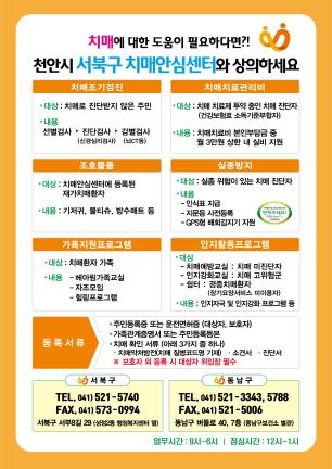 이현기 서북구보건소장은 “나이 상관없이 최근 일에 대한 기억력을 상실하거나 익숙한 일 처리에 어려움이 생기는 등 치매 의심 증상이 발생하면 언제든 치매안심센터와 상담하길 바란다”며 “천안시는 지역주민의 치매 관리를 위해 최선을 다하겠다”고 말했다.