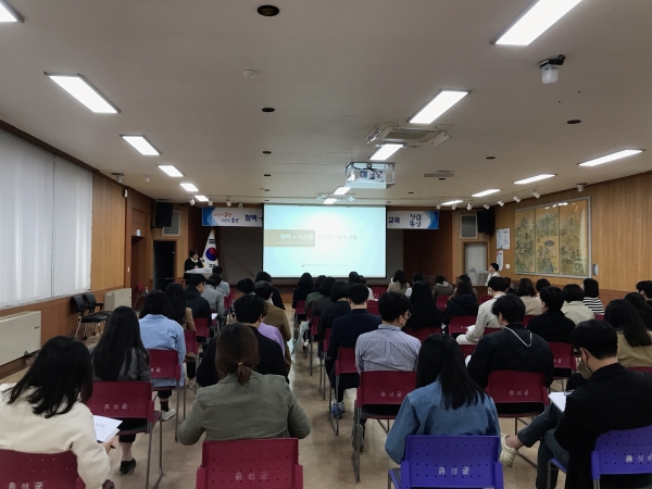이날 교육은 한국지역정보개발원 청백-e 운영지원단 소속 강윤구 전문 강사를 초빙해 ‘청백-e 시스템’의 주요기능 및 업무처리 절차, 주요 예방행정 시나리오 설명 및 조치방법, 자기진단 제도에 관해 교육을 실시했다.